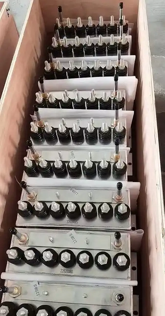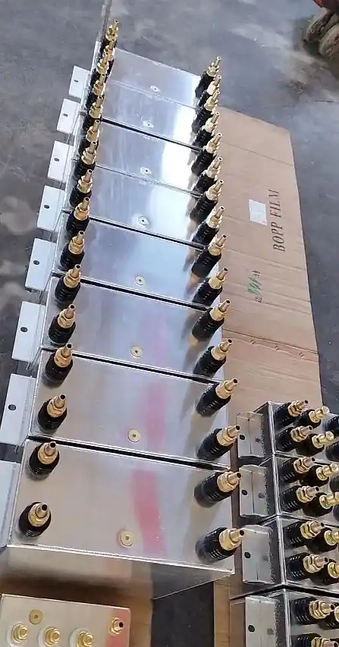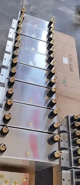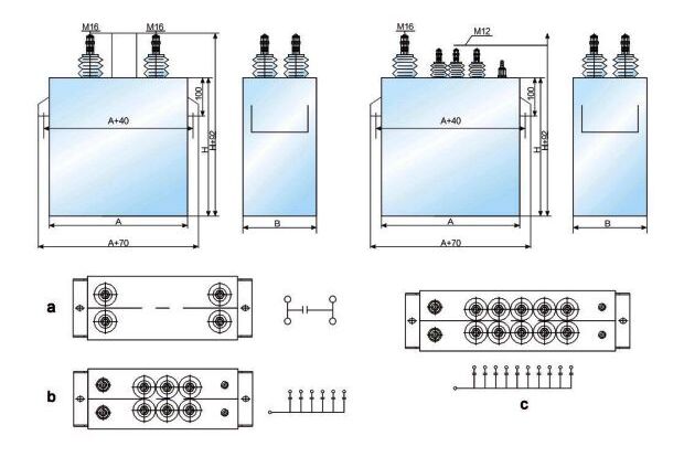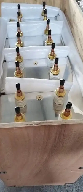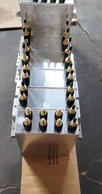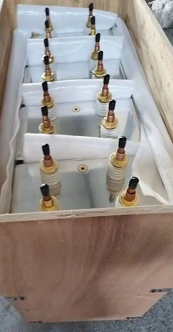 Конденсаторы состоят из одной или нескольких секций, в зависимости от разводки имеют от 4 до 12 выводов. При эксплуатации конденсаторы должны быть подключены к системе водяного охлаждения, через штуцеры.